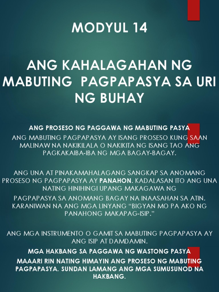 Lagi mong timbangin kung ano ang maibibigay na kabutihan at negatibong dulot ng iyong kapasyahan. 2 Sa gayoy magagawa mo ang mabuting pagpapasya at ang bawat sabihin moy kaalaman ang ibabadya. Edukasyon sa Pagpapakatao Modyul para sa Mag-aaral Modyul 14 Quarter 4.