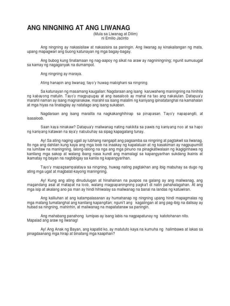 Ang Ningning At Ang Liwanag Pdf